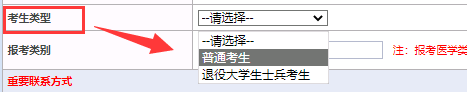 选择考生类型:/普通考生/退役大学生士兵考生。