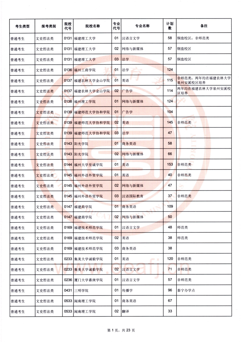 头条新闻 > 福建省2026年普通高校专升本考试招生计划